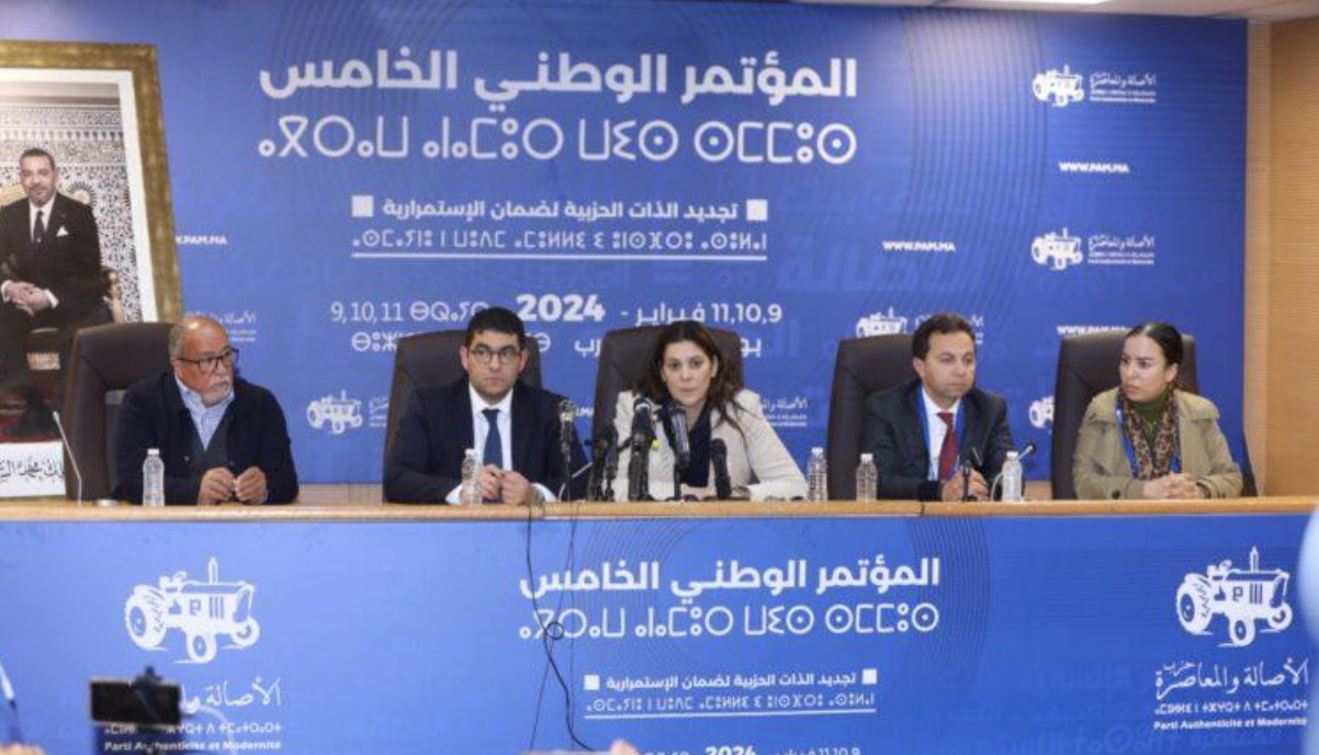 Le samedi 10 février 2024, immédiatement après la fin des travaux d’élection de la présidente du conseil national et du secrétariat général, le PAM a tenu une conférence de presse avec la participation de la coordinatrice du secrétariat général, Mme Fatima-Zahra Mansouri, des deux membres du secrétariat général, M. Mohamed Mehdi Bensaid et Salaheddine Aboulghali, de la présidente du conseil national du parti, Mme Najwa koukous, et du président de l’Académie de formation, Dr.Ahmed Akhchichine.