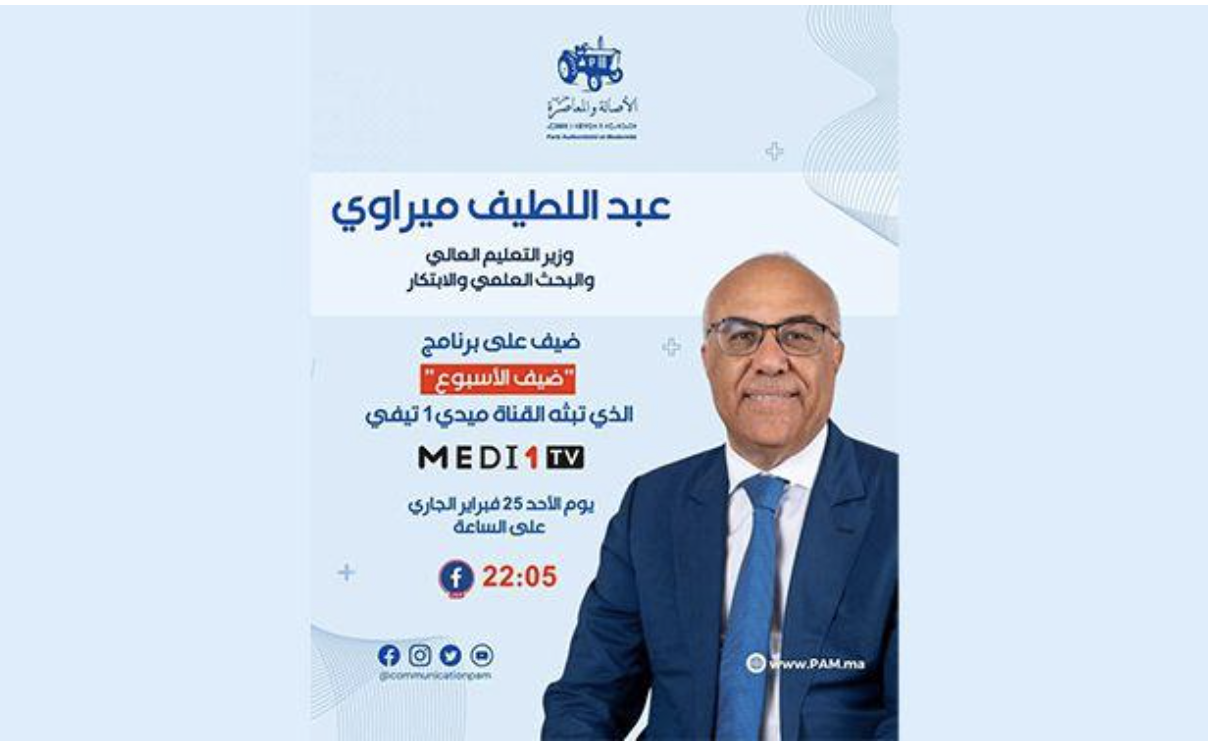 Le ministre de l’enseignement supérieur, de la recherche scientifique et de l’innovation, Abdellatif Miraoui sera l’invité de l’émission “Dayf Al’Osbou3” sur la chaîne “Médi1 TV”, ce dimanche 25 février à partir de 22h05.