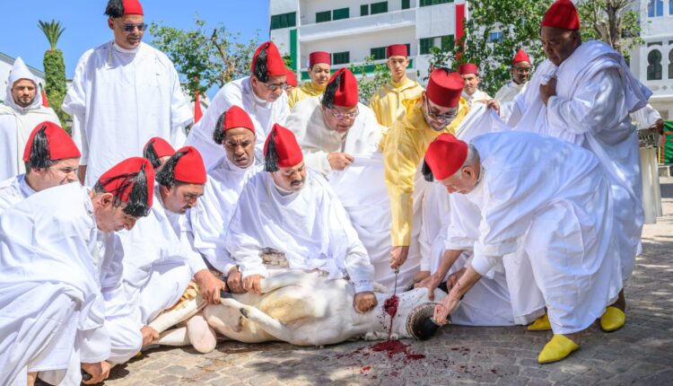 بعد ذلك، قام جلالة الملك بنحر أضحية العيد اقتداء بسنة جده المصطفى عليه أزكى الصلاة والسلام، فيما قام إمام المسجد بنحر الأضحية الثانية.