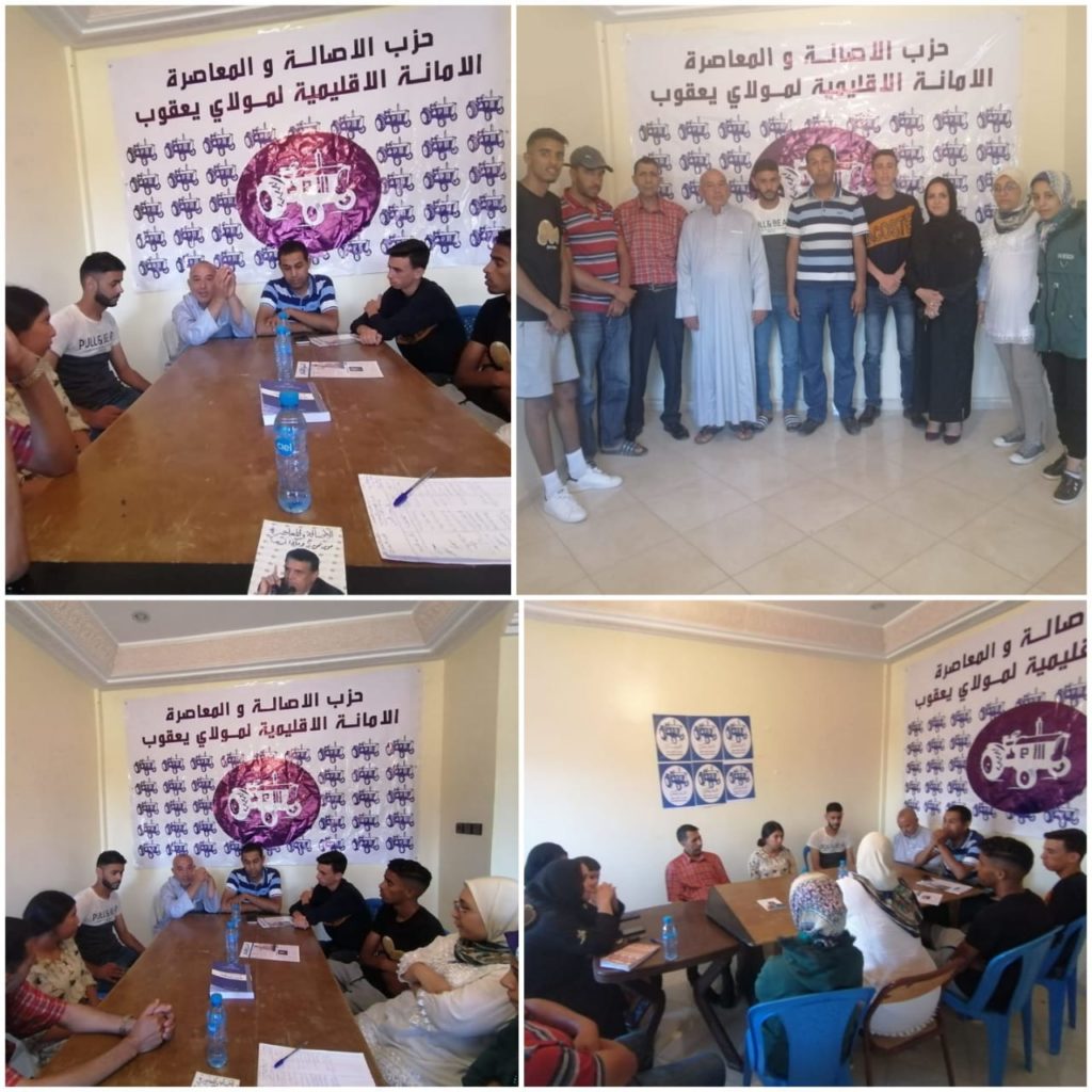 في اطار الدينامية السياسية والتنظيمية التي يعرفها حزب الأصالة والعاصرة بجهة فاس مكناس عامة وباقليم مولاي يعقوب خصة؛ انعقد يوم 17يونيو 2021 بالمقر الاقليمي للحزب بإقليم مولاي يعقوب لقاء تنظيميا للجنة التحضيرية لمنظمة الشباب باقليم مولاي يعقوب؛ تحت اشراف السيد موني بنشيخ رئيس اللجنة التحضيرية للمنظمة ومجموعة وبعض المنتخبين بجماعة عين الشقف ومجموعة من الشباب.
