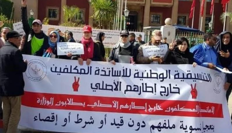 طالبت التنسيقية الوطنية للأساتذة المكلفين بالتدريس خارج إطارهم الأصلي، وزارة التربية الوطنية بالالتزام بوعودها بإصدار المراسيم المتفق بشأنها، وعلى رأسها مرسوم تغيير الإطار للأساتذة المكلفين بالتدريس خارج إطارهم الأصلي، محملة المسؤولية المباشرة للحكومة المغربية والوزارة الوصية في الاعتقال التعسفي الذي طال الأساتذة المكلفين بالتدريس خارج إطارهم الأصلي.