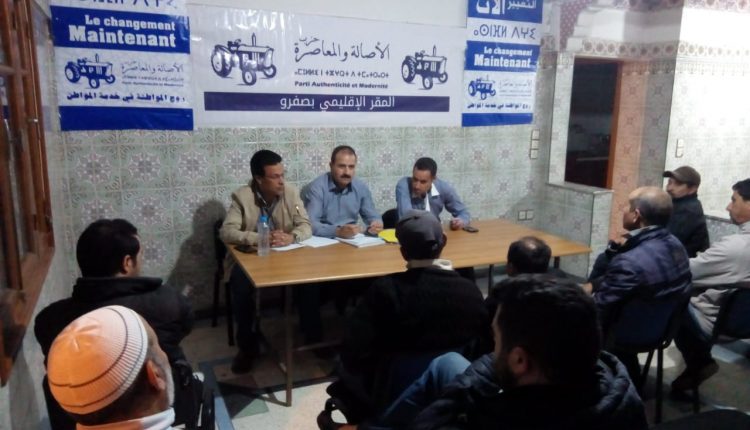 ترأس إدريس عميمي الأمين العام الإقليمي لحزب الأصالة والمعاصرة بصفرو، يوم السبت 18 ماي 2019 بالمقر الإقليمي للحزب، (ترأس) لقاء تواصليا مع مناضلات ومناضلي الحزب بالإقليم، وذلك بحضور جمال حمدون عضو المجلس الوطني للحزب عن إقليم صفرو، وأعضاء الأمانة الإقليمية.