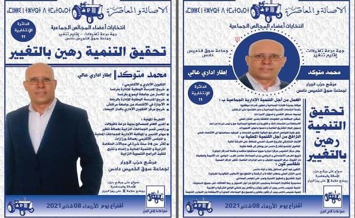 يخوض محمد متوكد، مرشح حزب الأصالة والمعاصرة لانتخابات أعضاء المجالس الجماعية، غمار استحقاقات 8 شتنبر 2021 بإقليم تنغير بجهة درعة تافيلالت، وذلك تحت شعار “تحقيق التنمية رهين بالتغيير”.