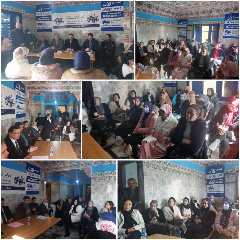 إلى ذلك، تم التأكيد على أهمية مواكبة عمل جميع مستشارات الحزب بالإقليم ودعمهن لإنجاح سياسة القرب تجاه مواطنات ومواطني الإقليم.