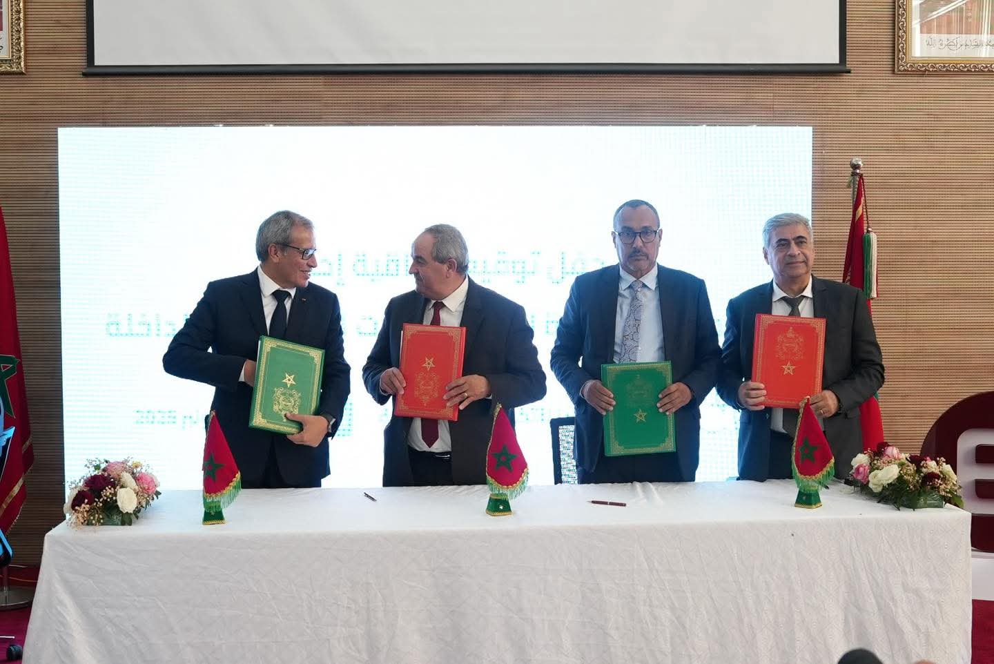 وقد وقع هذه الاتفاقية كل من وزير التعليم العالي والبحث العلمي والابتكار، عز الدين مداوي، ووالي جهة الداخلة- وادي الذهب، علي خليل، ورئيس مجلس الجهة الخطاط ينجا، ورئيس جامعة ابن زهر، نبيل حمينة، إضافة إلى المدير العام لشركة التنمية المحلية “الداخلة للتهيئة والتنمية”، خالد الزوهري.