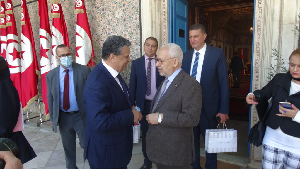 ولم يفوت راشد الغنوشي رئيس البرلمان التونسي، هذا اللقاء دون أن يؤكد على ضرورة تكثيف الجهود المشتركة من أجل تحقيق طموح الشعب المغاربي وحلمه في بناء مغرب عربي موحد طال انتظاره من قبل شعوب المنطقة، مؤكدا تتبعه للأخبار السعيدة التي تأتي من المغرب والمتعلقة بالتوافق والتقارب بين الأحزاب الإسلامية والأحزاب الحداثية، تسير في منحى إيجابي، مستدلا على ذلك بقوله أن “المغرب تميز تاريخيا ببلد التسامح والتعدد الديني” .