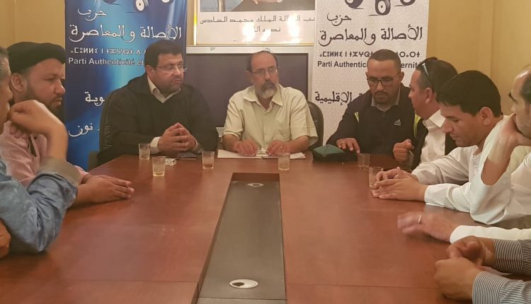 عقدت اللجنة التحضيرية الجهوية المكلفة بالإعداد للقاء التواصلي الداخلي لحزب الأصالة والمعاصرة بجهة كلميم واد نون، والمقرر تنظيمه يوم الأحد 31 مارس 2019، (عقدت) يوم السبت 16 مارس 2019 بالمقر الجهوي للحزب بكلميم، إجتماعا لمناقشة مجموعة من الأمور التنظيمية التي تهم اللقاء، وذلك بحضور ممثلي الأمانات الاقليمية للحزب بالجهة.