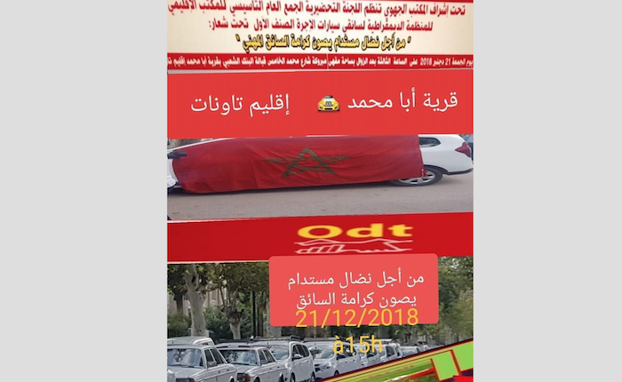 تحت إشراف المكتب الجهوي لمنظمة الديمقراطية للنقل بجهة فاس مكناس المنضوية تحت لواء المنظمة الديمقراطية للشغل ، سيعقد الجمع العام التاسيسي للمكتب الإقليمي للمنظمة الديمقراطية لسائقي سيارات الأجرة الصنف الأول بإقليم تاونات، يوم الجمعة 21 دجنبر 2018 على الساعة الثالثة بعد الزوال بقرية بامحمد، تحت شعار “من أجل نضال مستدام يصون كرامة السائق المهني”.