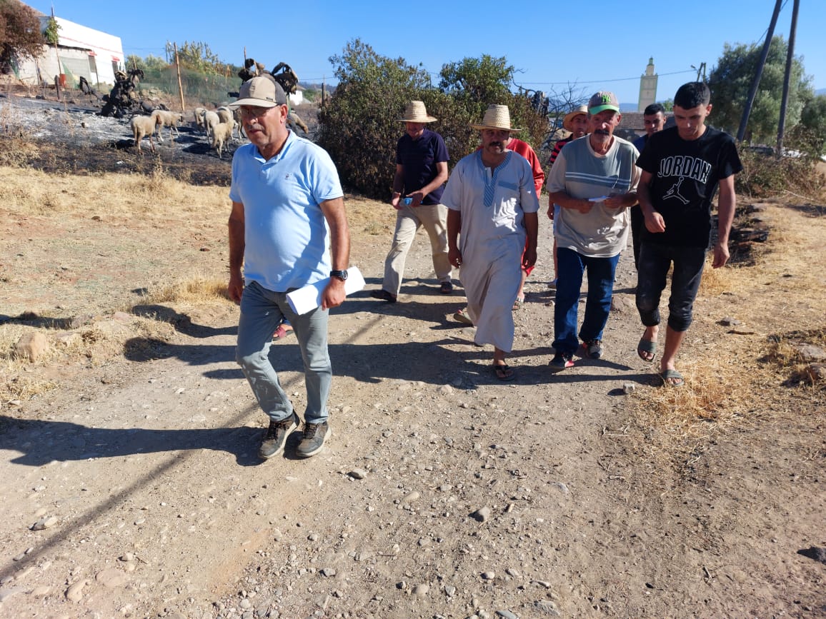 وانتقل النائب حماني رفقة مجموعة من المنتخبين لزيارة جماعة بني عروس بالخصوص دواوير: تكزرت وبوعلقمة ودار الحيط والحارش، وكذلك جماعة تزروت وبالضبط دواوير: تازية وامسمليل والحصن وتلايامين، للوقوف على حجم الخسائر المادية التي خلفتها الحرائق.