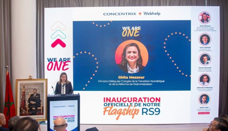 حضرت، وزيرة الانتقال الرقمي وإصلاح الإدارة، غيثة مزور، بمدينة سلا، مراسيم التدشين الرسمي لمركز ترحيل الخدمات الجديد RS9 التابع لشركة Concentrix+Webhelp، الفاعلة العالمية في مجال الحلول التكنولوجية المقدمة للزبناء، والتي توظف أكثر من 10.000 شاب في المملكة، وذلك بحضور الرئيس المدير العام للشركة.