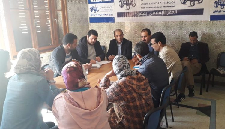 وتميز الإجتماع بتشكيل المكتب الإقليمي للمنظمة الديمقراطية للصحة بصفرو، إذ تم انتخاب أحمد الشريف رضا كاتبا إقليميا، والوالي نبيل نائبا للكاتب الإقليمي، ومسمار لمياء أمينا للمال، وغانم بشرى نائبا للأمين المال، وصندوقي فاطمة مقررا، ومشكور الحبيب نائبا للمقرر، وخديجة يعفو الله والبوردي مليكة مستشارين.