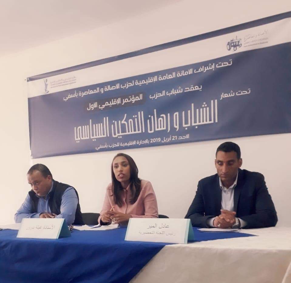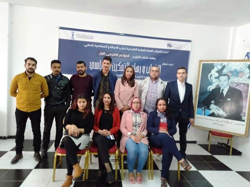 تحت إشراف الأمانة العامة الإقليمية لحزب الأصالة والمعاصرة بآسفي، عقد شباب الحزب، يوم الأحد 21 أبريل 2019 بمدينة آسفي، المؤتمر التأسيسي الأول لمنظمة شباب البام تحت شعار “الشباب ورهان التمكين السياسي”.