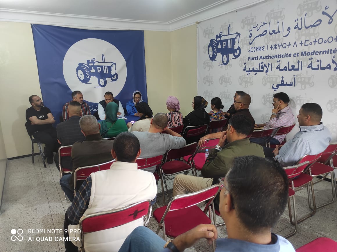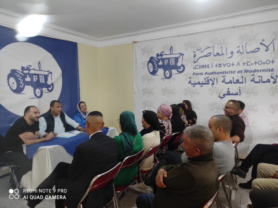 عقد الأمين الإقليمي لحزب الأصالة والمعاصرة بأسفي رشيد بوكطاية، يوم الأربعاء 22 ماي 2024 بالمقر الإقليمي للحزب، اجتماعا تنظيميا، بحضور البرلمانية نادية بزندفة ومناضلات ومناضلي الحزب.