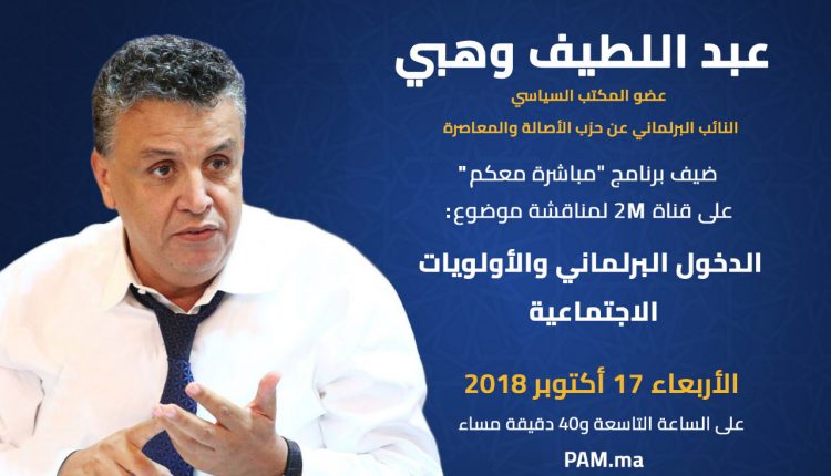سيحل السيد عبد اللطيف وهبي، عضو المكتب السياسي، والنائب البرلماني عن حزب الأصالة والمعاصرة ضيفا في برنامج “مباشرة معكم” الذي يبث على قناة 2M، وذلك لمناقشة موضوع: