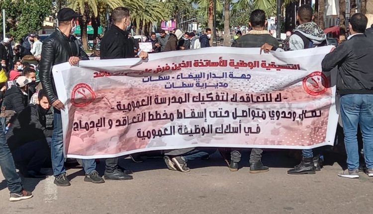 طالب الأساتذة المتعاقدون في جهة الدار البيضاء سطات، الوزارة الوصية، بالتعجيل بصرف منحة التكوين (شهر يوليوز) لجميع الأساتذة والأطر التربوية والاجتماعية والإدارية فوج 2021، مهددين بتسطير برنامج نضالي غير مسبوق من أجل الرد على التماطلات في حق مطالب جميع الأساتذة الذين “فرض عليهم التعاقد”.