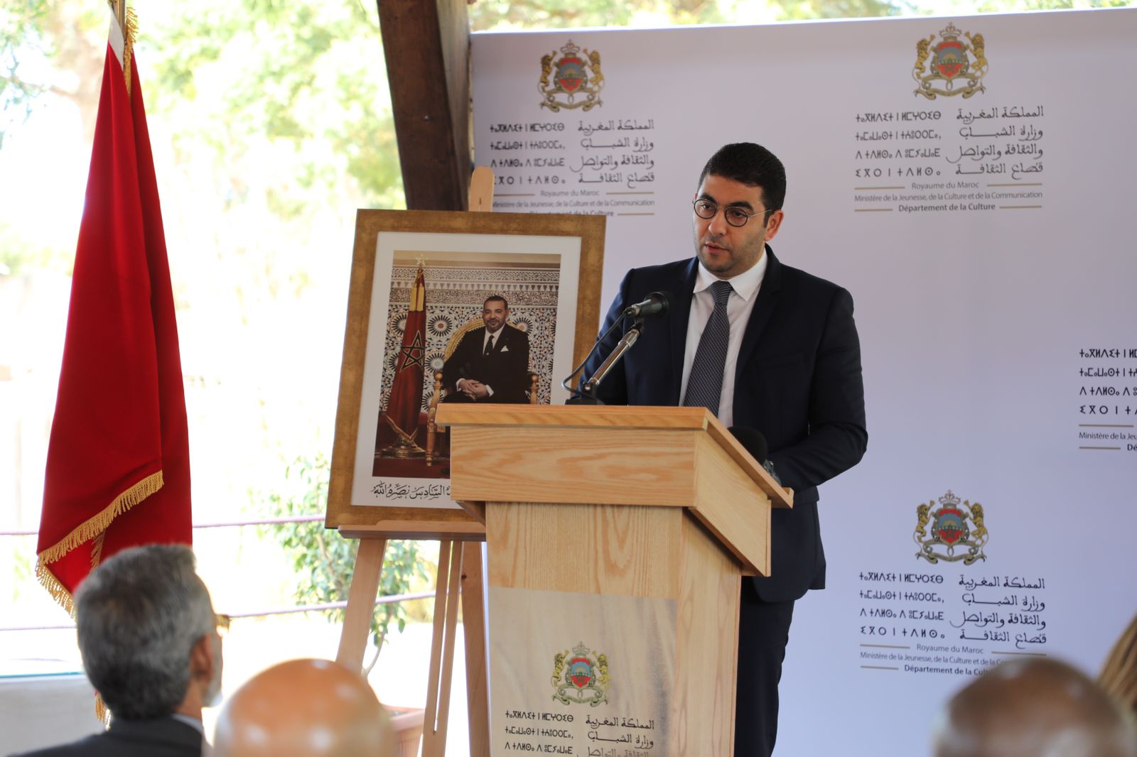 أشرف؛ وزير الشباب والثقافة والتواصل، محمد المهدي بنسعيد، اليوم الخميس 3 مارس 2022 بالحديقة الوطنية للحيوانات بالرباط، على عرض مستحاثة أثرية مستردة بعد تهريبها للخارج، بحضور القائم بأعمال السفارة الأمريكية وبعض السفراء.