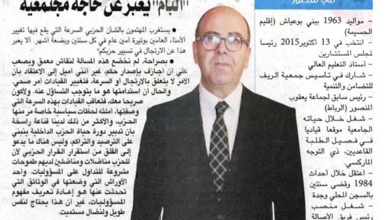وجوابا على سؤال “ماذا وقع حتى تبرز أزمة سياسية في الحزب”، رد بن شماش قائلا “منذ ما يقارب ثلاثة أشهر، وأنا أبحث وسط هذه الأزمة المفتعلة وما صاحبها من صخب وضجيج، عن رؤية وبرنامج بديلين، بل حتى عن مجرد فكرة واقتراح من شأنه أن يضع الحزب على سكة الانبعاث والانطلاق، علما أن جدول أعماله زاخر بعدد من الأعباء والمهام، ولا شيء عدا الكلام العام والفضفاض، عندما تفحصه وتضعه على محك النقد والتساؤل تجده خاويا وفارغا من أي مضمون سياسي أو فكري، يحزنني كثيرا إننا أضعنا وقتا ثمينا”.