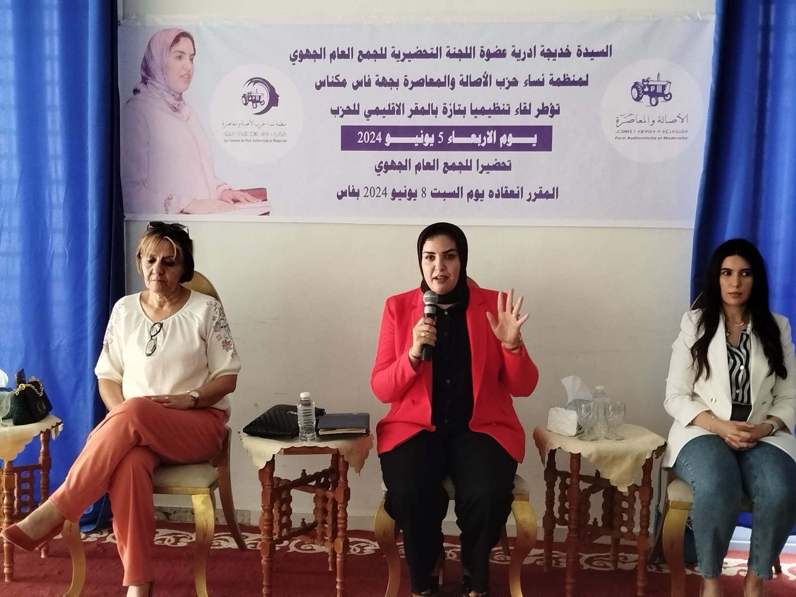 في إطار الدينامية التي يعرفها حزب الأصالة والمعاصرة بجهة فاس مكناس تحضيرا للجمع العام لمنظمة نساء حزب الأصالة والمعاصرة، نظمت اللجنة التحضيرية للجمع العام للمنظمة بإقليم تازة، اليوم الأربعاء 05 يوينو 2024 بالمقر الإقليمي للحزب، لقاء تنظيميا، أطرته خديجة أدرية، عضو اللجنة التحضيرية للجمع العام، المقرر انعقاده يوم السبت 08 يونيو 2024 بفاس.