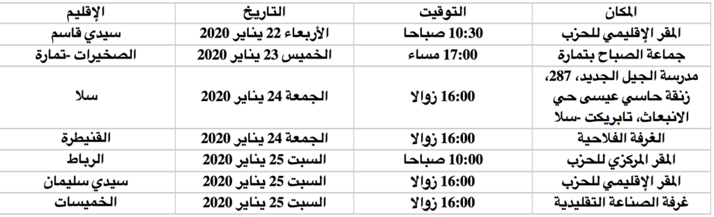 جدولة الجموع العامة لانتداب المؤتمرات والمؤتمرين بأقاليم جهة الرباط سلا القنيطرة