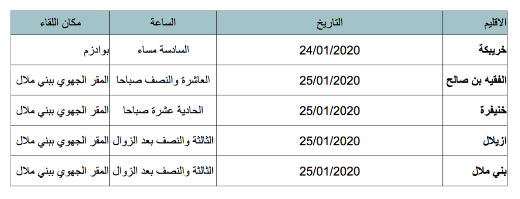 جهة بني ملال - خنيفرة جدولة لقاءات انتداب المؤتمرات والمؤتمرين بواسطة بام آخر تحديث 2020-01-23 0 1٬698 شارك