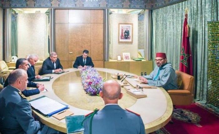 حضر جلسة العمل هاته رئيس الحكومة السيد سعد الدين العثماني، ومستشار صاحب الجلالة السيد فؤاد عالي الهمة ووزير الداخلية السيد عبد الوافي لفتيت، ووزير الشؤون الخارجية والتعاون الإفريقي والمغاربة المقيمين بالخارج السيد ناصر بوريطة، ووزير الصحة السيد خالد آيت الطالب، والجنرال دو كوردارمي عبد الفتاح الوراق المفتش العام للقوات المسلحة الملكية، والجنرال دو كور دارمي محمد حرمو قائد الدرك الملكي، ومفتش مصلحة الصحة العسكرية للقوات المسلحة الملكية الجنرال دوبريكاد محمد عبار والمدير العام للأمن الوطني المدير العام لمراقبة التراب الوطني السيد عبد اللطيف الحموشي.
