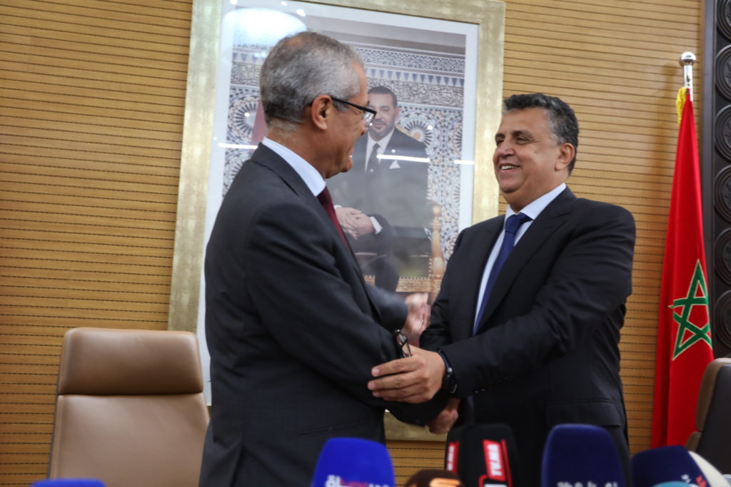 حفل تسليم السلط بين عبد اللطيف وهبي ومحمد بن عبد القادر بمقر وزارة العدل
