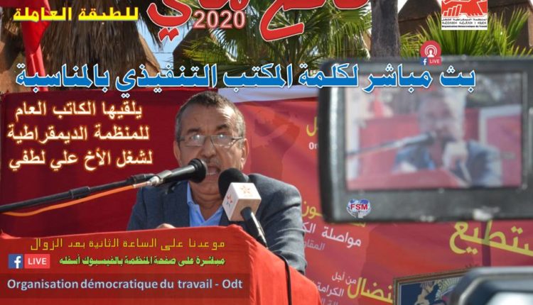 هذه السنة تتجه المنظمة الديمقراطية للشغل، ومعها باقي التنظيمات النقابية، إلى الاستعانة بأشكال جديدة من التعبئة والاحتفال “عن بعد” بسبب الفيروس، حيث سطرت المنظمة، في هذا الصدد، برنامجا افتراضيا متنوعا لتغطية هذا الاحتفال السنوي المهم بالنسبة لشريحة كبيرة من المجتمع المغربي، إذ سيلقي علي لطفي، الكاتب العام للمنظمة، كلمة بهذه المناسبة باسم المكتب التنفيذي في بث مباشر، يوم غد الجمعة، كما ستنظم ندوة الأطر النقابية والاجتماعية عبر تقنية الاجتماع عن بعد، حول موضوع “المغرب والعالم ما بعد كورونا”.. آفاق نموذج تنموي وعقد اجتماعي جديد”.