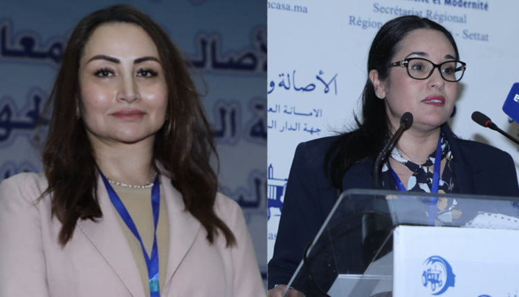 رئيسة منظمة نساء حزب الأصالة والمعاصرة قلوب فيطح تهنئ نادية فكري بمناسبة انتخابها رئيسة للمكتب الجهوي للمنظمة بجهة الدار البيضاء سطات