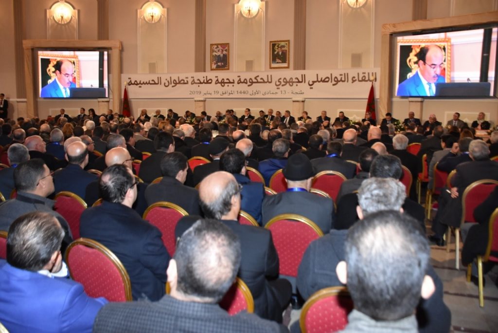 باسم مجلس جهة طنجة تطوان الحسيمة، وجه رئيس المجلس السيد إلياس العماري الشكر لرئيس الحكومة على مبادرته إلى تنظيم لقاءات موسعة على مستوى الجهات، وذكر بكون أول لقاء تم تنظيمه من طرف الحكومة كان بعاصمة المملكة بالرباط، عندما ترأس رئيس الحكومة، بداية شهر يونيو من سنة 2017، بمقر رئاسة الحكومة اجتماعا موسعا حول إقليم الحسيمة، حضره رؤساء الفرق السياسية بمجلس هذه الجهة ومنتخبو الإقليم. “وقد أعلنتم وقتها عن إطلاق دينامية محمودة لزيارة جهات المملكة، للوقوف عن قرب على تقدم المشاريع الحكومية على المستوى الترابي، والإنصات إلى تطلعات وطموحات ممثلي السكان”، يقول رئيس مجلس الجهة مخاطبا رئيس الحكومة.