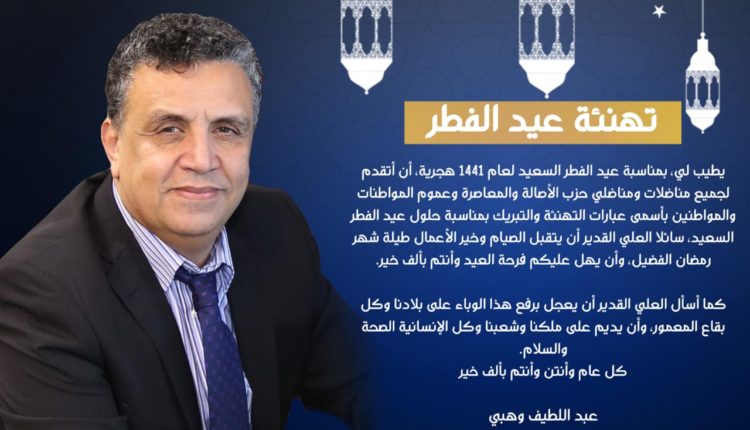 وبهذه المناسبة، يتقدم الأمين العام لحزب الأصالة والمعاصرة السيد عبد اللطيف وهبي لجميع مناضلات ومناضلي حزب الأصالة والمعاصرة ومن خلالهم لعموم المواطنات والمواطنين، بأسمى عبارات التهنئة والتبريك بمناسبة حلول عيد الفطر السعيد، سائلا العلي القدير أن يتقبل الصيام وخير الأعمال طيلة شهر رمضان الفضيل، وأن يهل على الجميع فرحة العيد بألف خير.