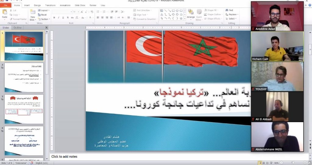 ارتأى القيمون على تنظيم الندوات الرقمية شباب الأصالة والمعاصرة الالتفات إلى معاناة الجالية المغربية بالخارج مع ما يشهده العالم من اضطرابات منذ انتشار جائحة فيروس كوفيد 19 المستجد. واختار المنظمون طرح هذا الموضوع على طاولة النقاش من خلال طرح تساؤل ” كيف يواجه مغاربة العالم تداعيات جائحة كورونا؟؟”. هذا التساؤل المعنون للندوة الرقمية الرابعة لشباب البام، التي كلف بتسييرها كل من محمد صلوح، وبتعاون مع حمزة أعناو، أجاب عنه أربعة متدخلين أوكل إليهم تأطير النقاش، ويتعلق الأمر بأعضاء المجلس الوطني لحزب الأصالة والمعاصرة لمغاربة العالم، وهم على التوالي، عبد الرحمان إمزل (إيطاليا)، وعلي العبادي (هولاندا)، وهشام القادي (تركيا)، ويوسف تسولي (الولايات المتحدة الامريكية).