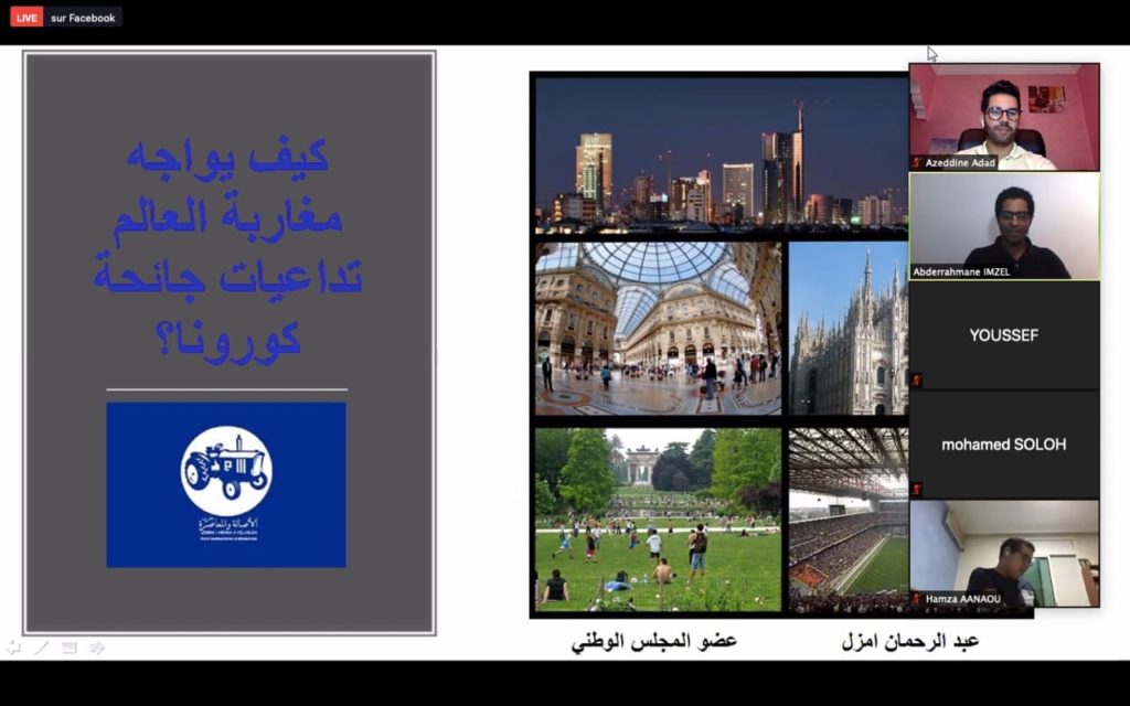 استهل عبد الرحمان إمزل مداخلته بمطالبة المشاركين بالتوقف دقيقة صمت لقراءة الفاتحة ترحما على المغاربة ضحايا وباء كوفيد 19، وحزنا على كافة من الأرواح التي أزهقها الفيروس الخبيث. ليواصل حديثه عن موضوع الندوة الرقمية الرابعة بالتطرق إلى ثلاث محاور أساسية ويتعلق الأمر بالأسباب ثم تداعيات إلى الحلول النسبية لمعالجة بعض المشاكل التي أحدثتها الجائحة للمغاربة المقيمين بإيطاليا. إذ شرح عبد الرحمان إمزل عضو المجلس الوطني لحزب الأصالة والمعاصرة عن مغاربة العالم مراحل تطور انتشار مرض كوفيد 19، بدءاً من مرحلة تفشي الفيروس إلى غلق الحدود ثم تطبيق الحجر الصحي على عموم الأراضي الإيطالية، قبل أن يعرج للحديث عن التداعيات التي خلفتها الجائحة لدى المغاربة العالقين بدول المهجر أو المغاربة العالقين بالمغرب، إلى جانب المشاكل التي يعاني منها المغاربة المقيمين بدول المهجر (ايطاليا نموذجا)، كما لم يغفل أن يخوض في معضلة الموتى واشكالية الطقوس والمقابر الإسلامية. هذا واستعرض المتحدث باسم مغاربة إيطاليا عددا ن الحلول النسبية التي اجتهد في تنزيلها عدد من الفعاليات المغربية لمعالجة بعض المشاكل التي يعاني منها مغاربة ايطاليا. نظير حملات الانسانية لاقتناء القفة التضامنية للمواد الغذائية وتوزيعها على عدد من المغاربة المنتمين للطبقات الاجتماعية الهشة. في انتظار الفرج القريب وزوال غيوم الحزن التي خيمت على سماء إيطاليا.