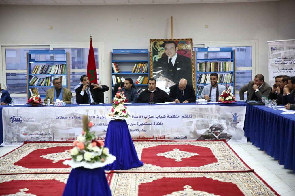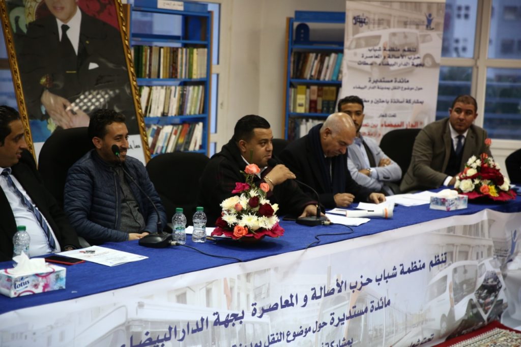 عقدت منظمة شباب حزب الأصالة والمعاصرة بجهة الدار البيضاء سطات، اليوم الجمعة 20 دجنبر 2019، بالمركب الثقافي أبي عنان بعمالة حي البرنوصي بمدينة الدار البيضاء، مائدة مستديرة حول موضوع النقل بالدار البيضاء، بمشاركة أساتذة باحثين ومختصين ومنتخبين وشباب حزب الأصالة والمعاصرة بمدينة الدار البيضاء، وذلك تحت شعار: “الدار البيضاء بين تحدي المدينة الذكية… وأزمة النقل”.