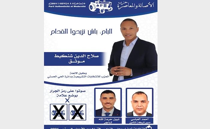 يخوض صلاح الدين شنكيط الإنتخابات التشريعية وكيلا للائحة حزب الأصالة والمعاصرة بعمالة مقاطعات الحي الحسني، حيث يعد من أبرز الوجوه المرشحة للظفر بمقعد برلماني عن العمالة المذكورة.