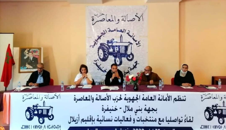 نظمت الأمانة العامة الجهوية لحزب الأصالة والمعاصرة بجهة بني ملال-خنيفرة، يوم أمس السبت 21 نونبر 2020، لقاءً تواصلياً مفتوحاً مع المنتخبات والفعاليات النسائية للحزب في بين الويدان بإقليم أزيلال، في احترام تام للتدابير الاحترازية المتخذة من طرف السلطات الصحية.