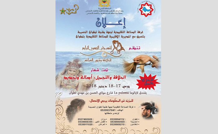 تنظم غرفة الصناعة التقليدية لجهة طنجة تطوان الحسيمة برئاسة السيد امحمد لحميدي، يومي 17 و 18 دجنبر الجاري، بفندق لابالوما la paloma بمدينة تطوان، فعاليات النسخة الرابعة للمهرجان الجهوي للحلاقة وتزيين العرائس، تحت شعار: “الحلاقة والتزيين: أصالة وتجديد”.