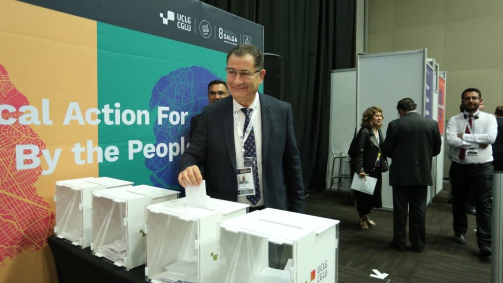 تٙمــــــــــــكّٙن، مرشح المملكة المغربيــــــة والقارة الإفريقية الدكتور محمد بودرا، من تجاوز الدور الأول والعبور بأمان إلى الدور الثاني الخاص بالمنافسة حول رئاســــة منظمة المدن والحكومات المحلية المتحدة العالمية CGLU-MONDE، وذلك خلال عملية الانتخاب التي جرت مساء اليوم الخميس 14 نونبر الجاري، بمدينة دوربان بجنوب إفريقيا.