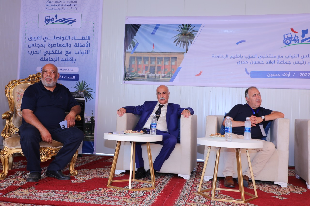 أكد، الأمين الإقليمي لحزب الأصالة والمعاصرة، محمد صلاح الخير، أن اللقاء التواصلي الذي عقده الفريق النيابي للبام، مع منتخبات ومنتخبي ورؤساء مجالس الجماعات التابعة لإقليم الرحامنة وأعضاء الغرف المهنية وأعضاء مجلس الجهة، يدخل في إطار قنوات التواصل مع المنتخبين عبر ربوع المملكة؛ للوقوف عن كتب على انشغالات المواطنين وانتظاراتهم والتفاعل معها في سبيل إيجاد حلول لها.