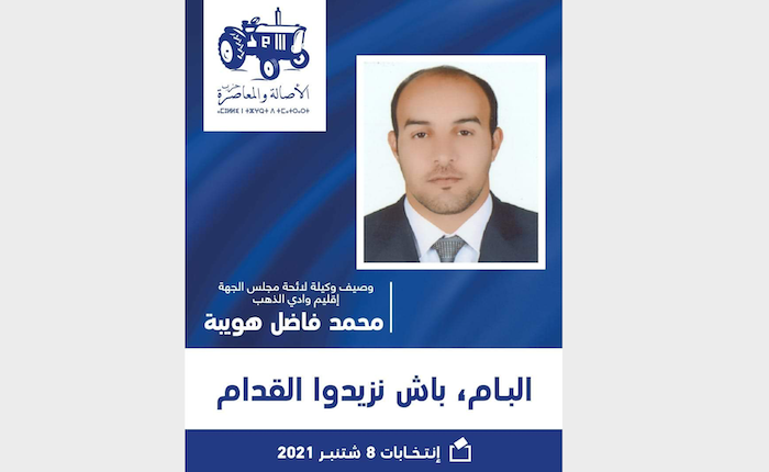 رشح حزب الأصالة والمعاصرة بجهة الداخلة وادي الذهب، الإطار والمقاول الشاب محمد فاضل هويبة، ليكون وصيفا لوكيلة الحزب في انتخابات مجلس الجهة عن إقليم وادي الذهب، المزمع إجراؤها يوم 8 شتنبر المقبل.