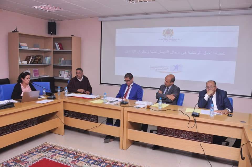 انطلقت يوم الخميس 31 أكتوبر 2019 وعلى مدى يومين بمقر دار المنتخب بمدينة مراكش، أشغال ورشة إعداد المخطط التنفيذي لخطة العمل الوطنية حول الديمقراطية وحقوق الانسان لجهة مراكش أسفي، وذلك برئاسة التهامي محيب نائب رئيس الجهة، وبحضور كل من مدير التنمية الجهوية ومدير دار المنتخب، ورئيسة لجنة العمل الثقافي، وعدد من أعضاء وأطر مجلس الجهة، وفريق عمل وزارة الدولة المكلفة بحقوق الإنسان.