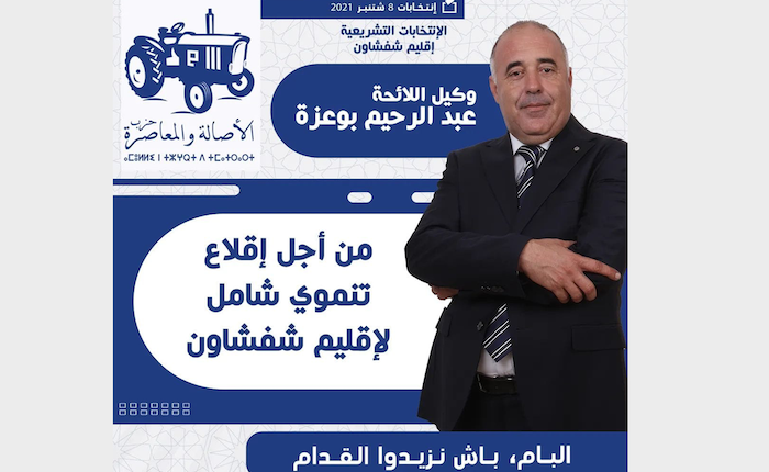 تمكن، مرشح حزب الأصالة والمعاصرة عن دائرة شفشاون، السيد عبد الرحيم بوعزة، من الظفر بالمقعد البرلماني، وذلك بعد الإعلان عن نتائج الاستحقاقات التشريعية التي جرت أمس الأربعاء 08 شتنبر 2021.