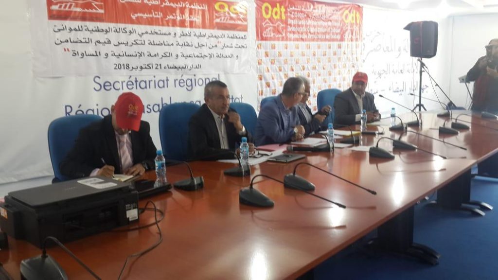 في إطار الدينامية المتجددة التي تشهدها المنظمة الديمقراطية للشغل وباقي الفروع المنضوية تحت لواءها، احتضن المقر الجهوي لحزب الأصالة والمعاصرة بجهة الدار البيضاء يوم الأحد 21 أكتوبر 2018، المؤتمر التأسيسي للمنظمة الديمقراطية لأطر ومستخدمي الوكالة الوطنية للموانئ.