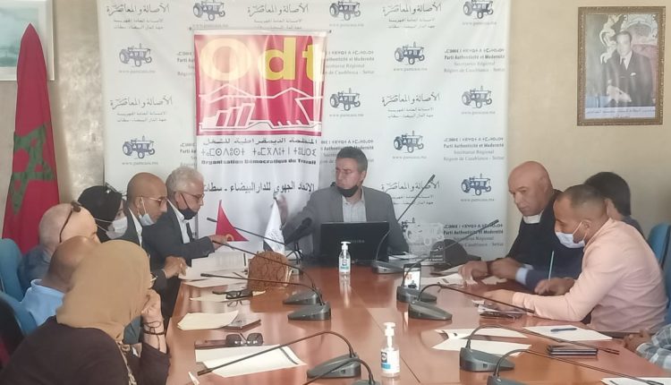 نظم مكتب الإتحاد الجهوي للمنظمة الديمقراطية للشغل، يوم الخميس 29 أبريل 2021، بالمقر الجهوي لحزب الاصالة والمعاصرة لجهة الدار البيضاء سطات، ورشة تكوينة حول “انتخابات مندوبي الأجراء”، من تأطير حسن لعجاج المدير الإقليمي لوزارة الشغل والإدماج المهني بعمالة مقاطعات الفداء مرس السلطان.