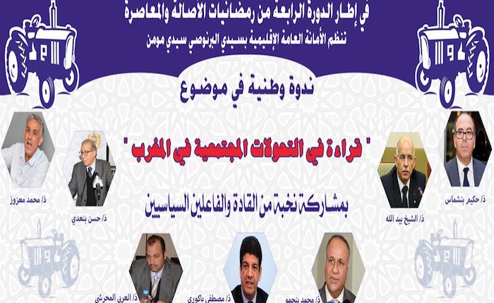 في إطار انفتاحه على مختلف المشارب الفكرية والسياسية ومساهمة منه في تأطير المواطنات والمواطنين وتعزيز الحوار البناء، وسيرا على منهاج السنوات السابقة، وبمشاركة نخبة من القادة والفاعلين السياسيين، تنظم الأمانة العامة الإقليمية لحزب الأصالة والمعاصرة بسيدي البرنوصي سيدي مومن، ندوة وطنية في موضوع “قراءة في التحول المجتمعي في المغرب”، وذلك ضمن فعاليات رمضانيات الأصالة والمعاصرة لهذا العام.