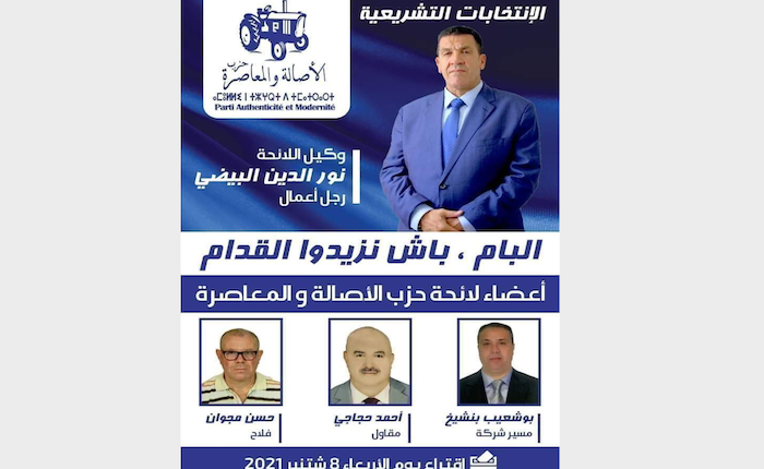 أشاد نور الدين البيضي وكيل لائحة حزب الأصالة والمعاصرة للإنتخابات التشريعية المقبلة بإقليم برشيد، بثقة الساكنة الكبيرة في البرنامج الإنتخابي للحزب ودعمها له، مبرزا أنه دافع عن مصالح الإقليم داخل قبة البرلمان في الولاية السابقة، حيث لم يفوت أية فرصة للترافع عن مشاكل الإقليم والدفاع عن مصالحه، والتحدث بشكل مباشر مع الجهات المعنية لتنزيل مشاريع تنموية.