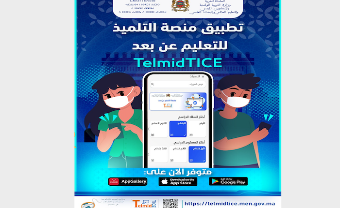 أطلقت وزارة التربية الوطنية والتكوين المهني والتعليم العالي والبحث العلمي، قطاع التربية الوطنية، التطبيق التربوي الجوال للتعلم “عن بعد”، “TelmidTICE “.