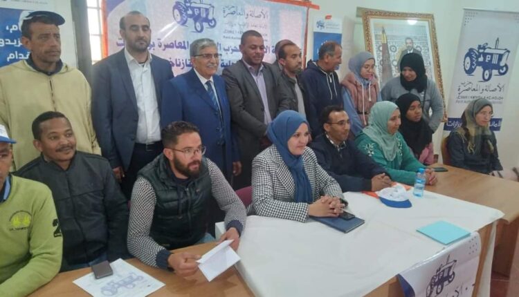 أشرف، النائب البرلماني عن دائرة ورزازات؛ الحسين بوحسيني؛ رفقة الأمين الإقليمي؛ مصطفى رزوق وأعضاء المجلس الوطني ورؤساء الجماعات الترابية المنتمين للحزب، يوم الخميس 31 مارس 2022؛ على الجمع العام لانتخاب هياكل الأمانة المحلية لتازناخت الكبرى.