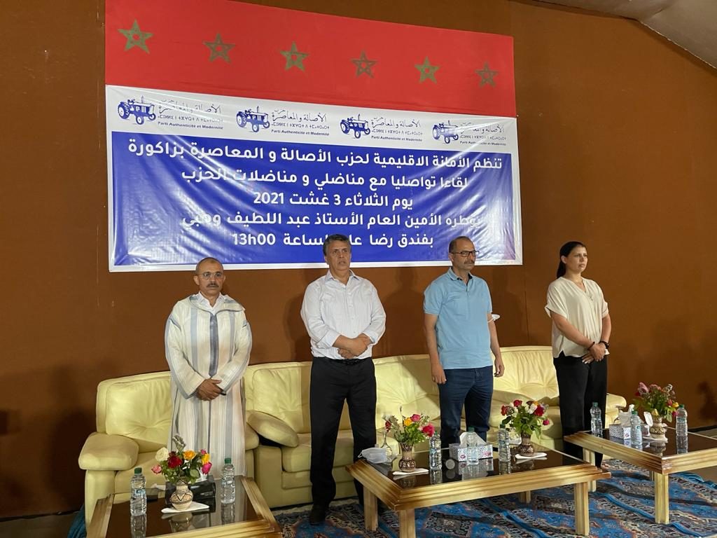 استكمالاً للزيارة التي يقوم بها السيد عبد اللطيف وهبي، الأمين العام لحزب الأصالة والمعاصرة، رفقة الوفد المرافق له، حط الرحال اليوم الثلاثاء 3 غشت الجاري، بمدينة زاكورة، ليعقد لقاءً تواصلياً مع مناضلات ومناضلي ومنتخبات ومنتخبي الحزب بالإقليم.