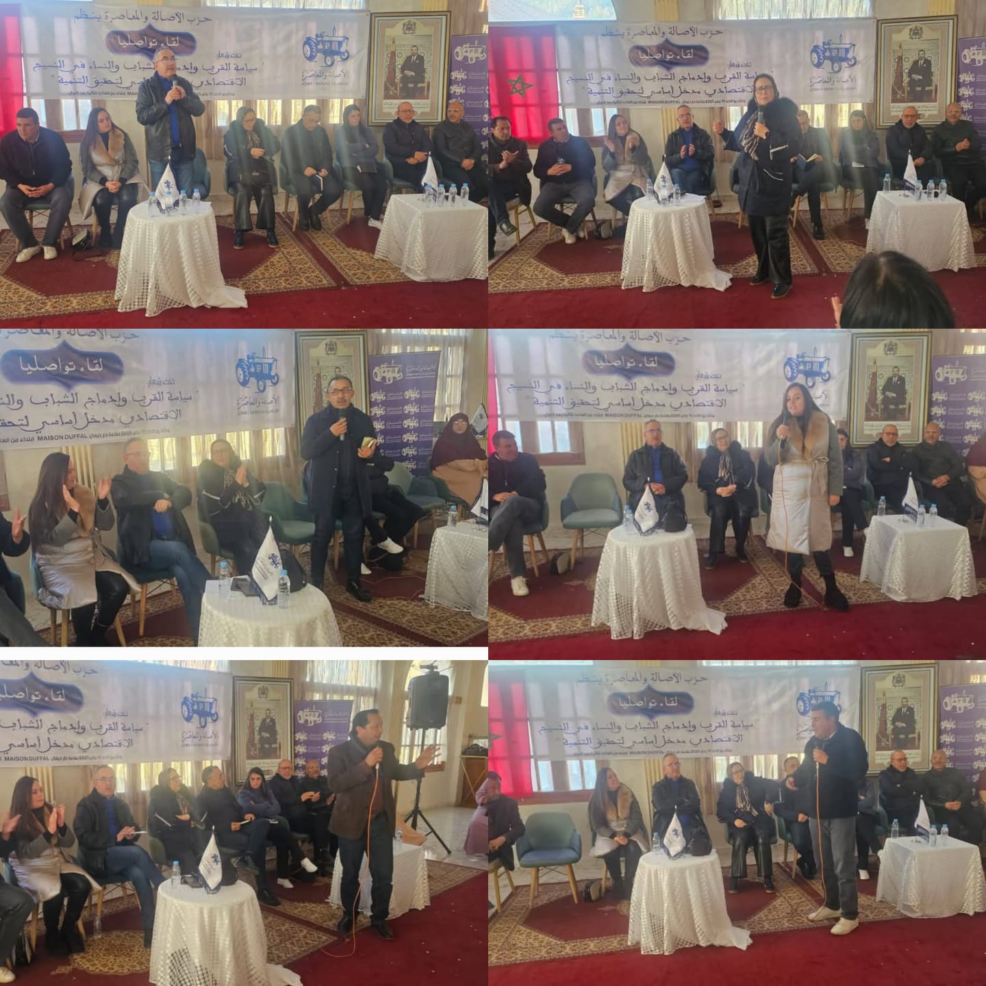 عروض مؤطري اللقاء همت جهود حزب الأصالة والمعاصرة؛ لتعزيز التواصل المباشر مع المواطنين، وفتح النقاش حول دور الشباب والنساء في الإسهام في التنمية الاقتصادية والاجتماعية، بما يتماشى مع رؤية الحزب لتقوية أواصر القرب وتطوير المشاريع الموجهة لهذه الفئات المهمة في المجتمع، في أجواء من النقاش المعمق والمنفتح على مختلف القضايا التي تهم المنطقة وسكانها، وضرورة وضع برامج عملية تسهم في تحقيق الإدماج الفعلي للشباب والنساء في النسيج الاقتصادي.