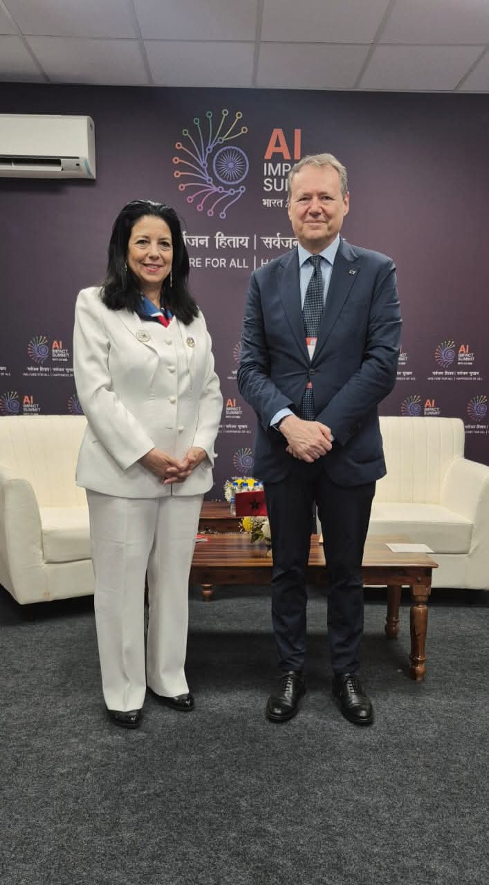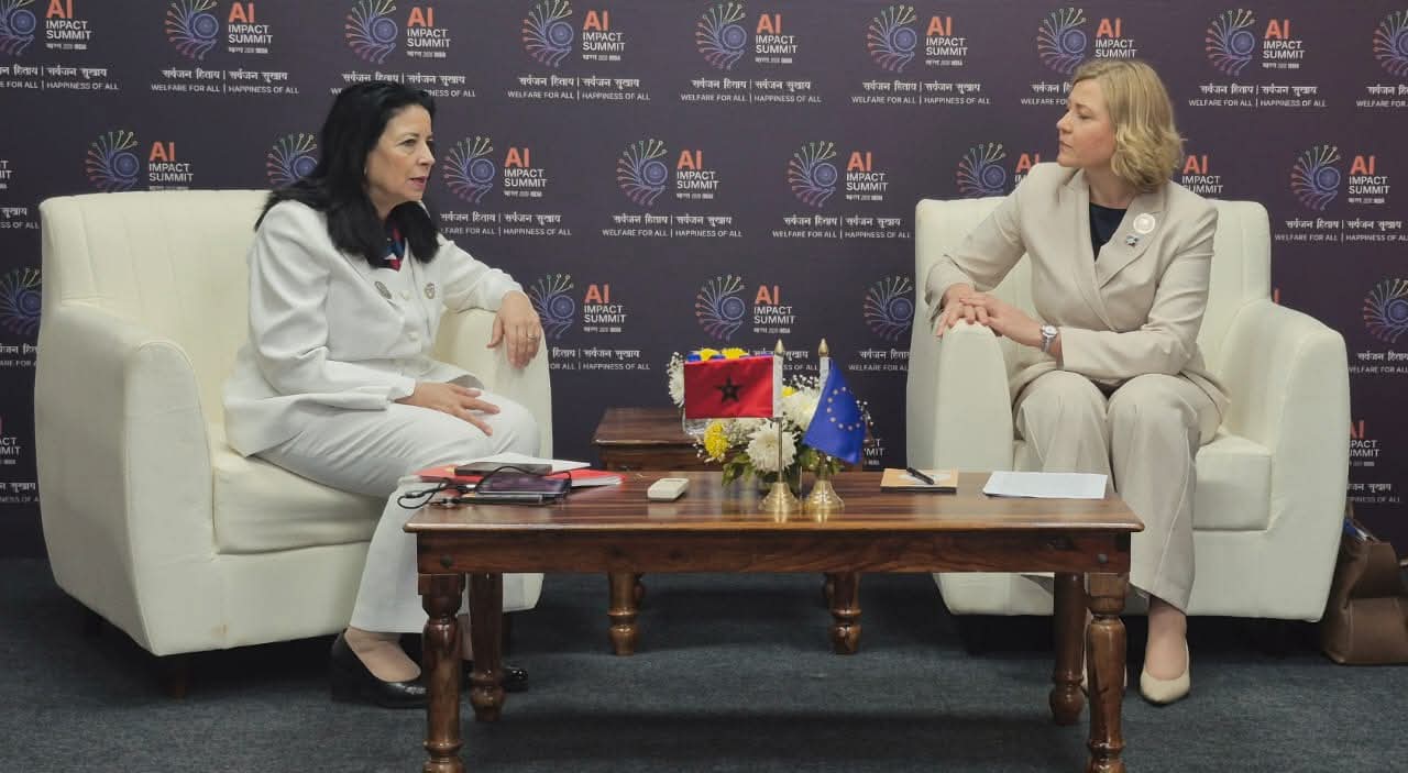 في إطار مشاركتها في قمة تأثير الذكاء الاصطناعي بنيودلهي، عقدت أمل الفلاح السغروشني، الوزيرة المنتدبة لدى رئيس الحكومة المكلفة بالانتقال الرقمي وإصلاح الإدارة، لقاء مع هينا فيركونن، نائب الرئيس التنفيذي للمفوضية الأوروبية المكلفة بالسيادة التكنولوجية والأمن والديمقراطية، وذلك بحضور روبيرتو فيولا، المدير العام للمديرية العامة لشبكات الاتصال والمحتوى والتكنولوجيا بالمفوضية الأوروبية.